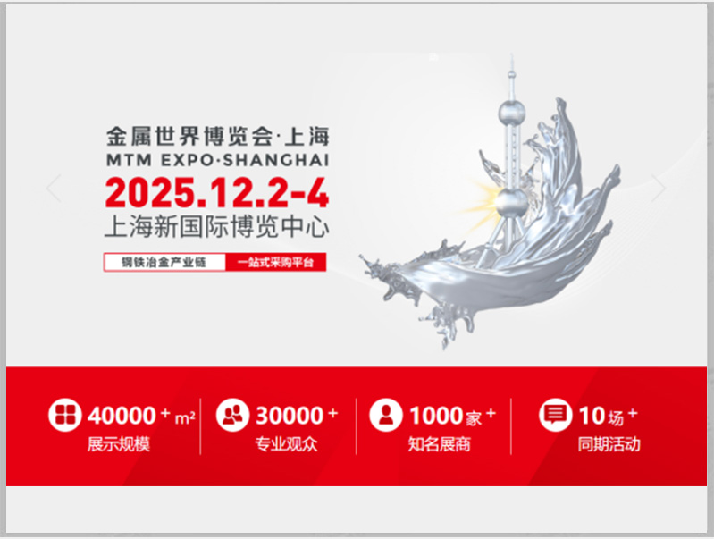 2025金属世界博览会(MTMEXPO)将于2025年12月2日-4日在上海新国际博览中心盛大举办。本届博览会将以“科技创新、绿色低碳、智能制造、***集约&rd...
